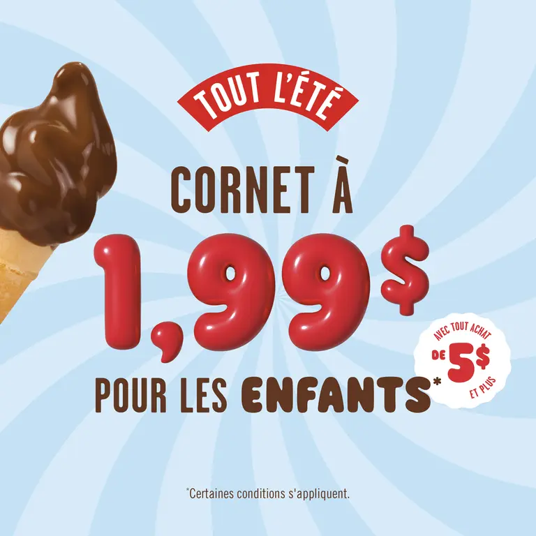 Cornet à 1,99$ pour les enfants tout l'été!
