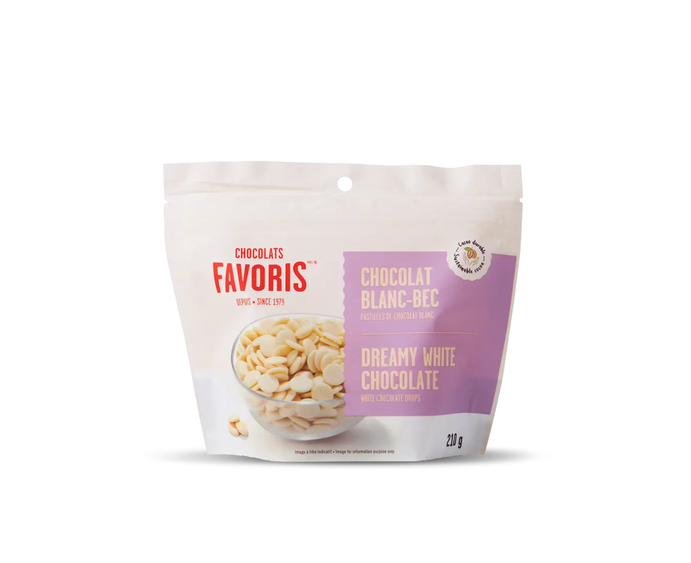 Du vrac en sac! Oui, nos pastilles de chocolat sont vendues en sac dans vos saveurs favorites : Classique lait, Classique noir, classique blanc et Dulce de leche. Ajoutez une touche de magie dans vos gâteaux et pâtisseries!