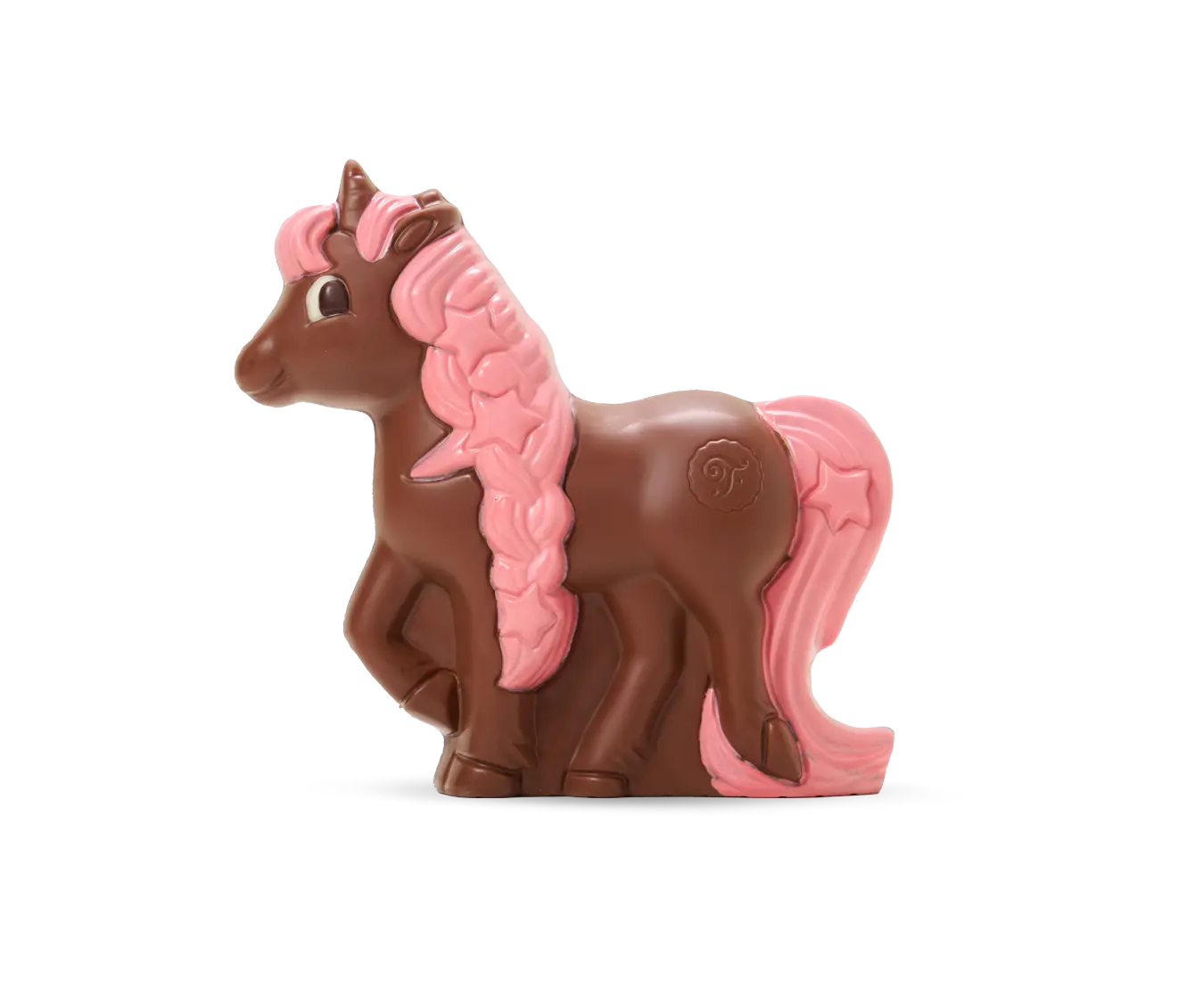 Galopez avec Romy la licorne vers un univers de plaisirs chocolatés et décadents! Une seule bouchée suffit pour faire sourire les petits. Magie!