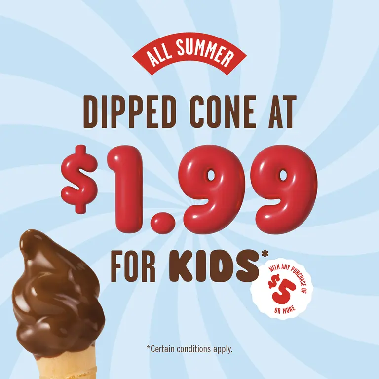 $1.99 diped cones for kids all summer
