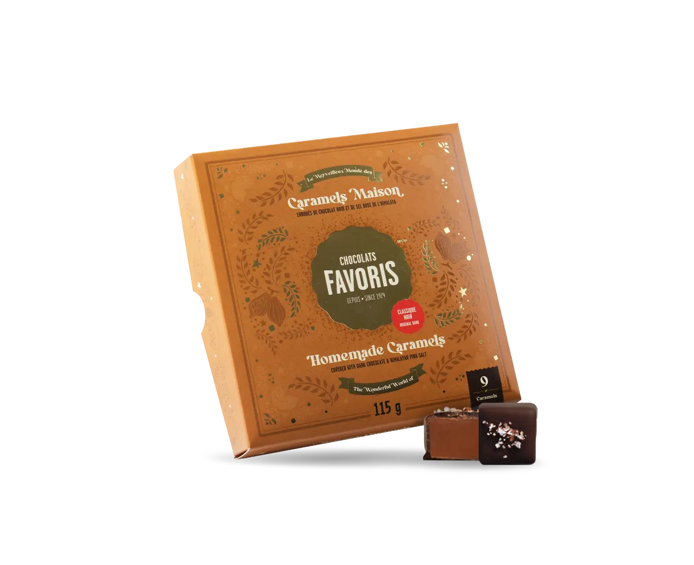 Impossible to resist our homemade caramels! A chic box of 9 bite-sized homemade caramels, covered in our famous dark chocolate and sprinkled with Himalayan Pink Salt. The ultimate hostess gift!