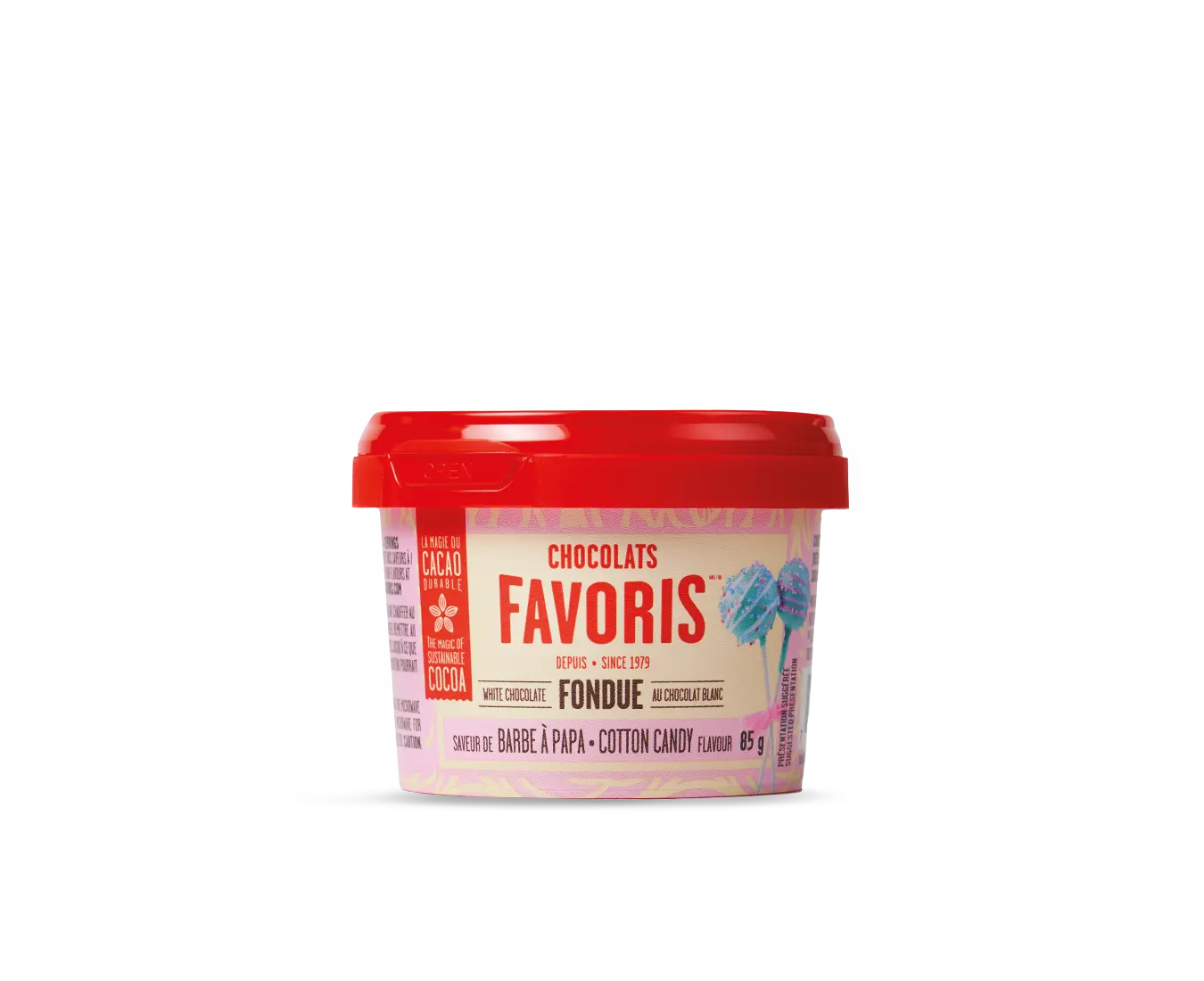 Discover the all-new mini chocolate fondue snack you've always dreamed of! Quick and easy to prepare: it's ready in just 1 minute in the microwave! It contains the same delicious oil-free chocolate as our small and large fondues that have been making your mouth water for 10 years now! How to prepare it? Remove the lid and heat in the microwave in 15-second intervals until melted! Enjoy!