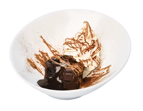 The nutritional information provided is for the Lava Cake with one scoop of ice cream. For a dipped version, please refer to the nutritional information and ingredients of the coating and corresponding dipper for your choice of chocolate.
