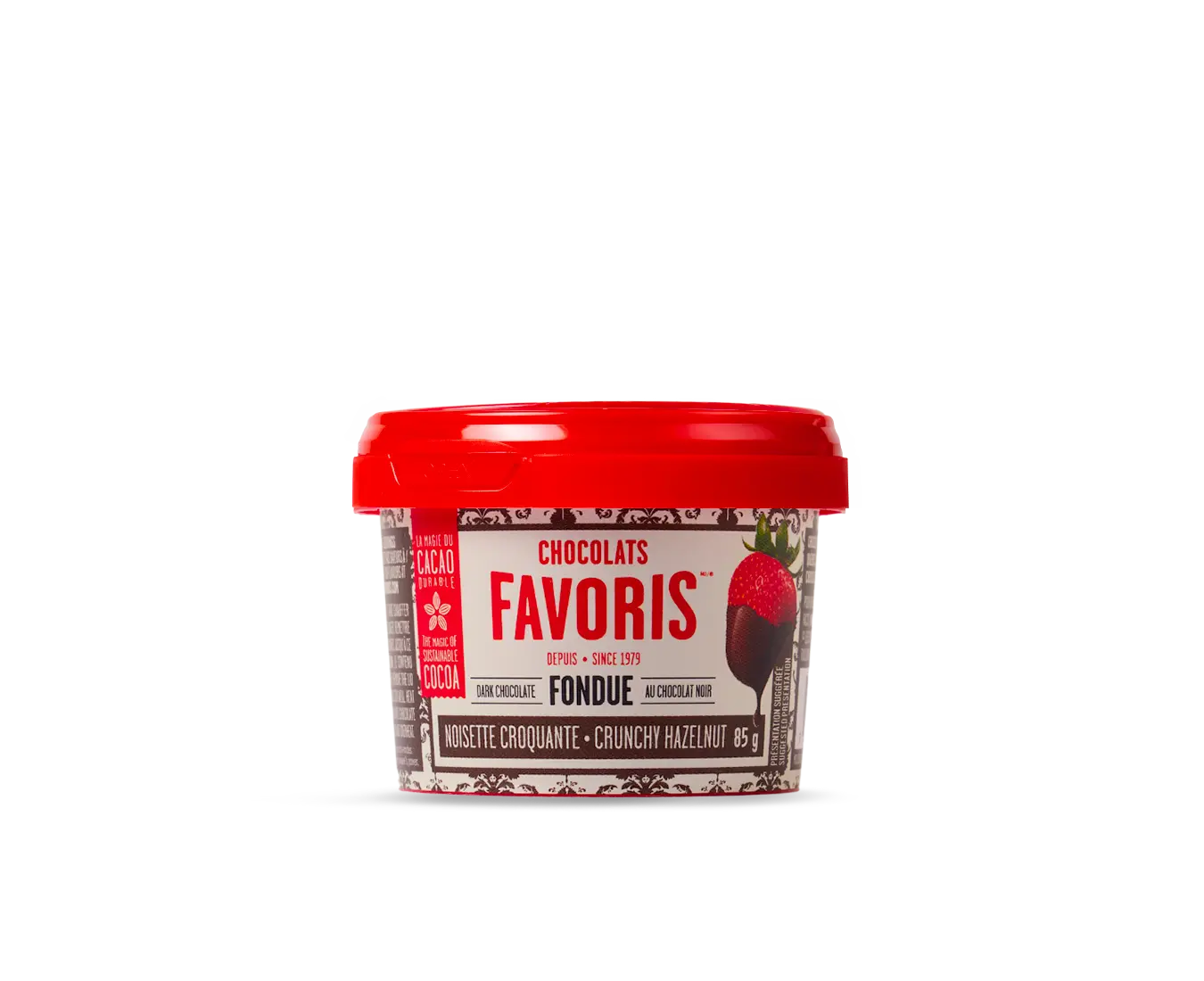 Discover the all-new mini chocolate fondue snack you've always dreamed of! Quick and easy to prepare: it's ready in just 1 minute in the microwave! It contains the same delicious oil-free chocolate as our small and large fondues that have been making your mouth water for 10 years now! How to prepare it? Remove the lid and heat in the microwave in 15-second intervals until melted! Enjoy!